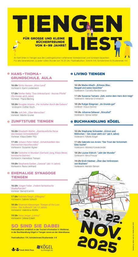 Eintritt: 9 €/erm. 4 €, VVK: Tourist-Information in Waldshut, Buchhandlung Kögel in Tiengen und an der Abendkasse.